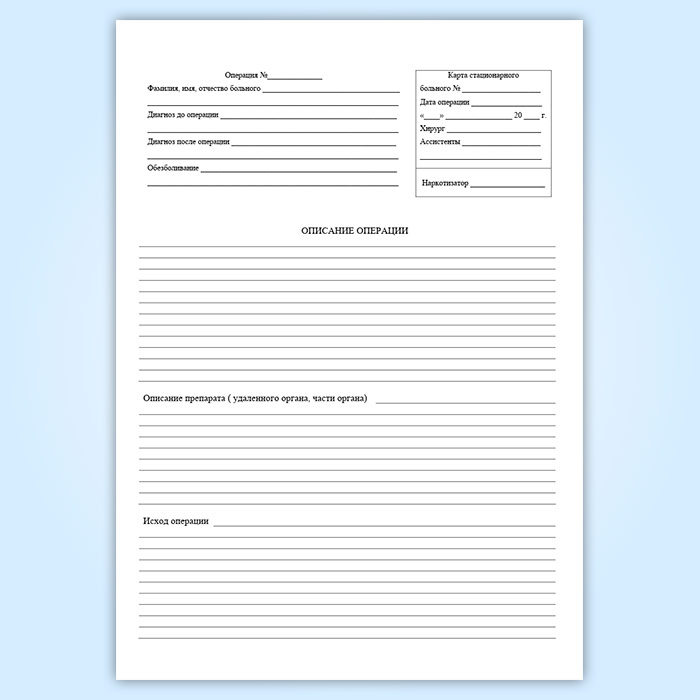 Журнал записи оперативных вмешательств в стационаре за год (форма 008/у) в Омске купить