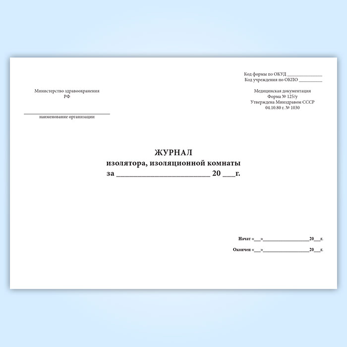 Журнал изолятора, изоляционной комнаты (форма 125/у) в Омске купить