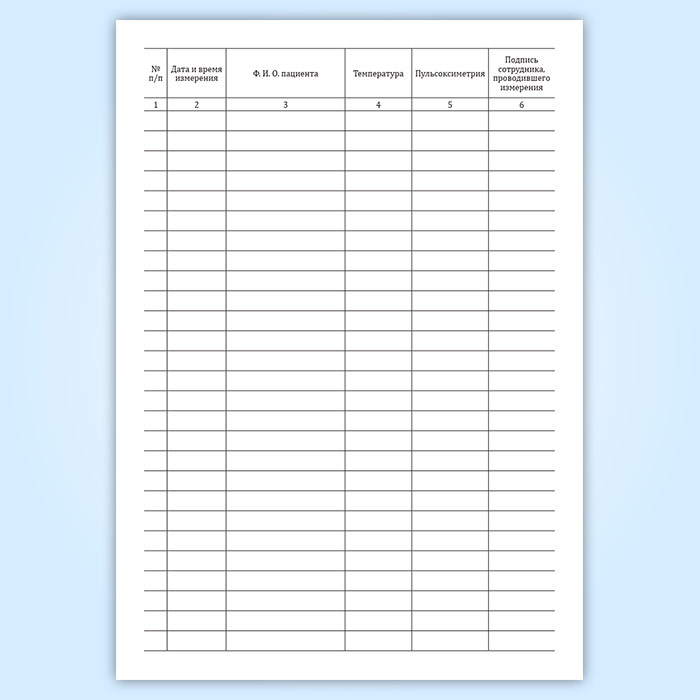 Журнал регистрации показаний пульсоксиметра и температуры тела пациентов в Омске купить