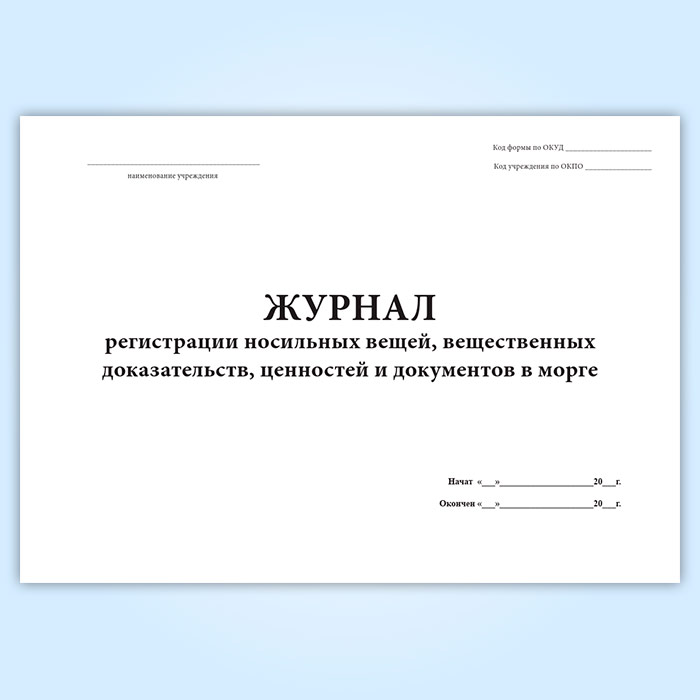 Журнал регистрации носильных вещей, вещественных доказательств, ценностей и документов в морге (форма 191/у) в Омске купить