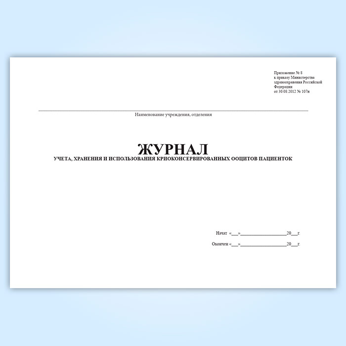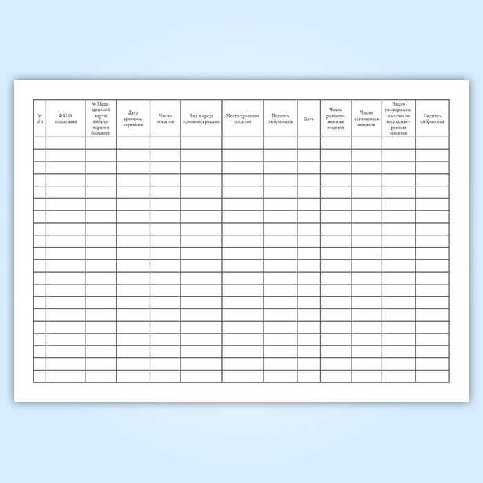 Журнал учета, хранения и использования криоконсервированных ооцитов пациенток в Омске купить