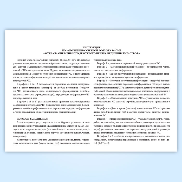 Журнал оперативного дежурного центра медицины катастроф (форма 168/у-01) в Омске купить