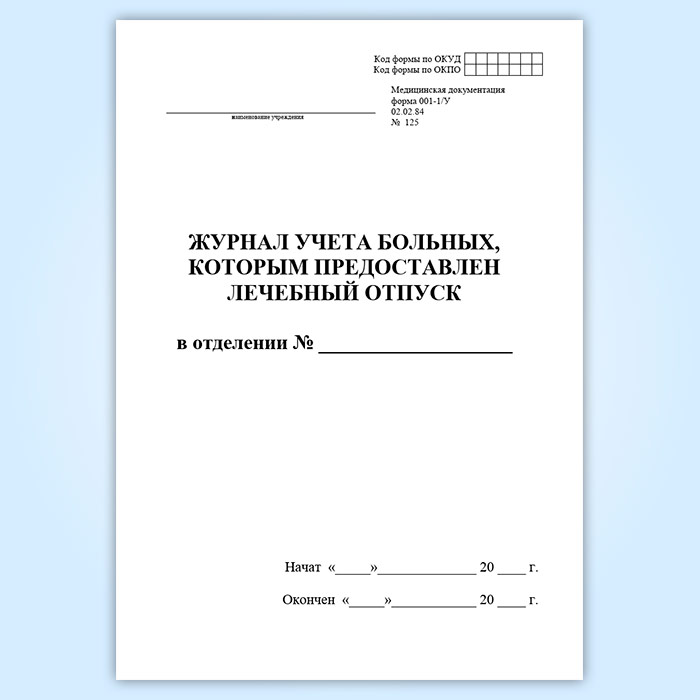 Журнал учета больных, которым предоставлен лечебный отпуск (форма 001-1/у) в Омске купить