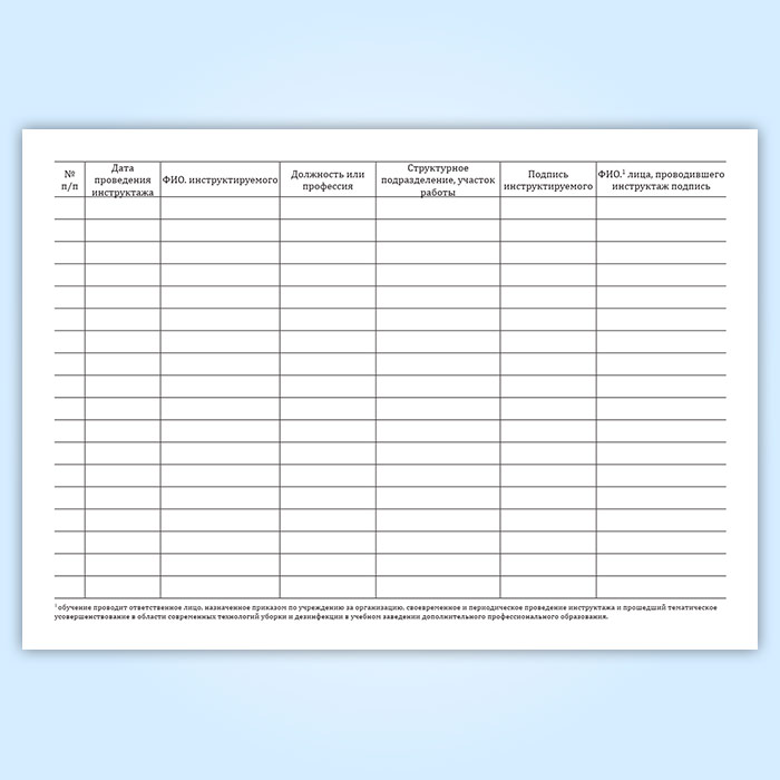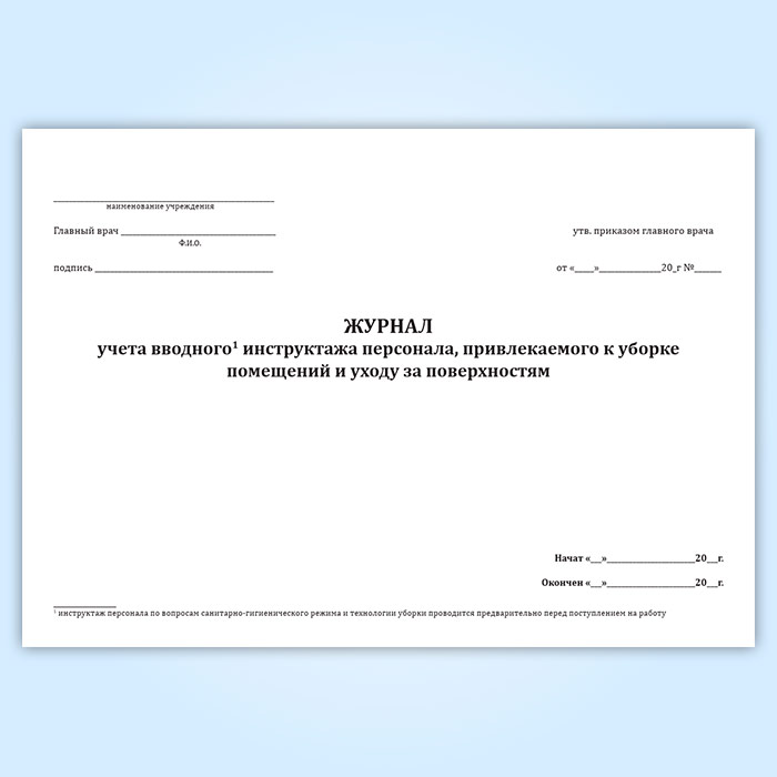 Журнал учета вводного инструктажа персонала, привлекаемого к уборке помещений и уходу за поверхностями в Омске купить