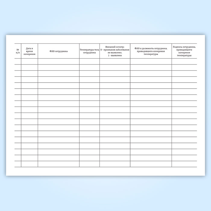 Журнал учета измерения температуры сотрудников (горизонтальный) в Омске купить