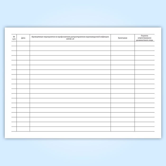 Журнал учета проведенных мероприятий по профилактике распространения коронавирусной инфекции COVID-19 в Омске купить
