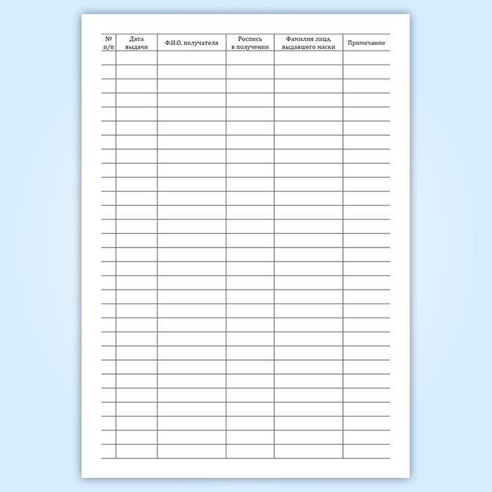 Журнал регистрации выдачи медицинских масок сотрудникам в Омске купить