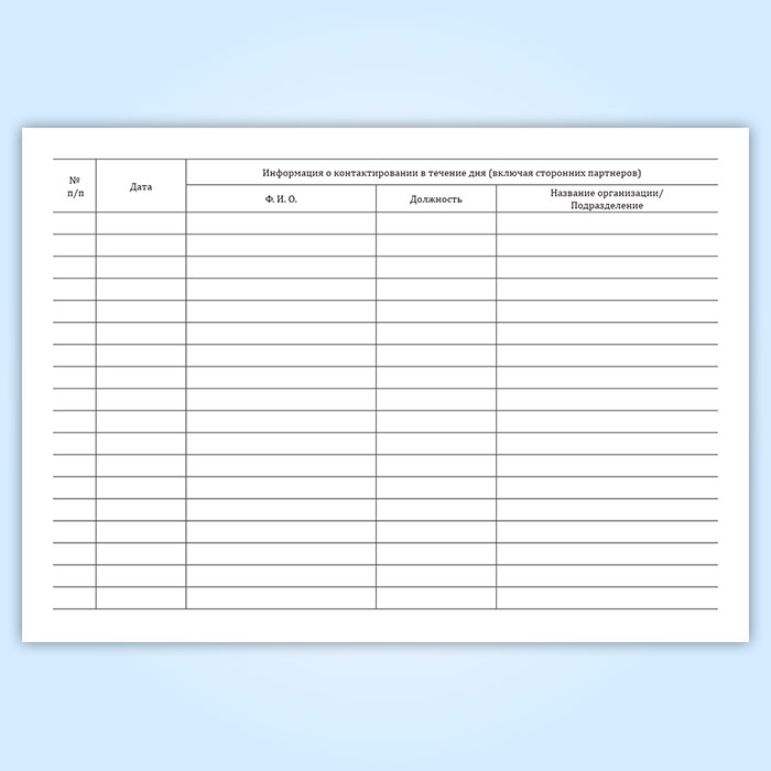 Журнал учета контактов сотрудника (в течение дня) в Омске купить