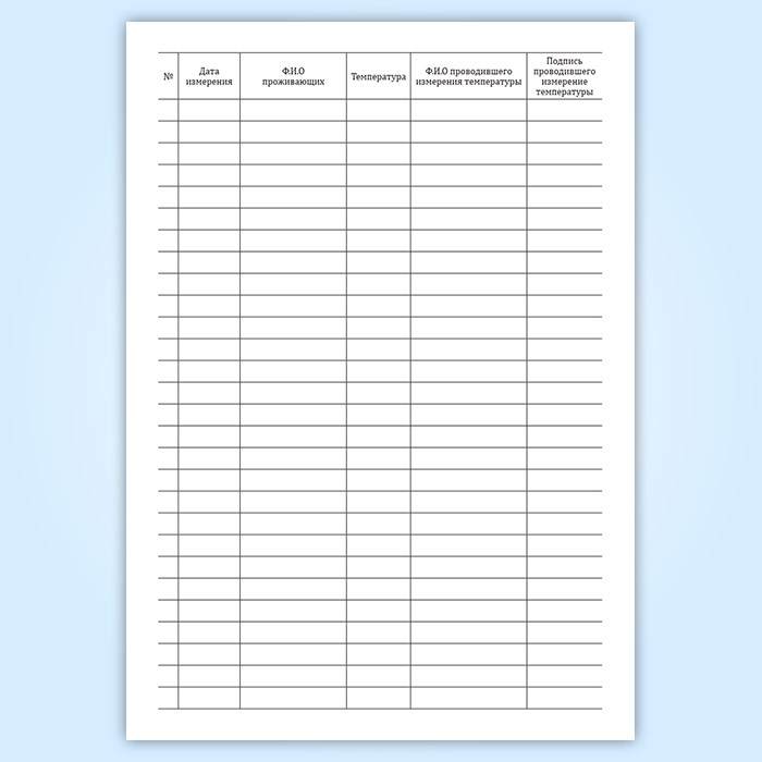 Журнал регистрации измерения температуры проживающих и служащих для профилактики коронавируса в Омске купить