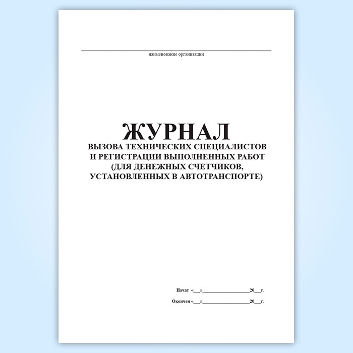 Журнал вызова технических специалистов и регистрации выполненных работ (для денежных счетчиков, установленных в автотранспорте) в Омске купить