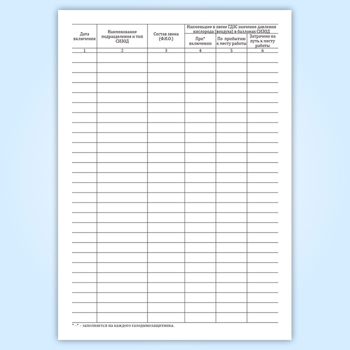 Журнал учета работающих звеньев газодымозащитной службе (ГДЗС) в Омске купить
