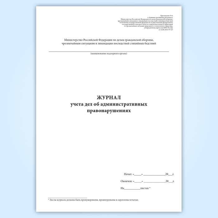 Журнал учета дел об административных правонарушениях (Приказ МЧС России от 14.06.2016 № 323) в Омске купить