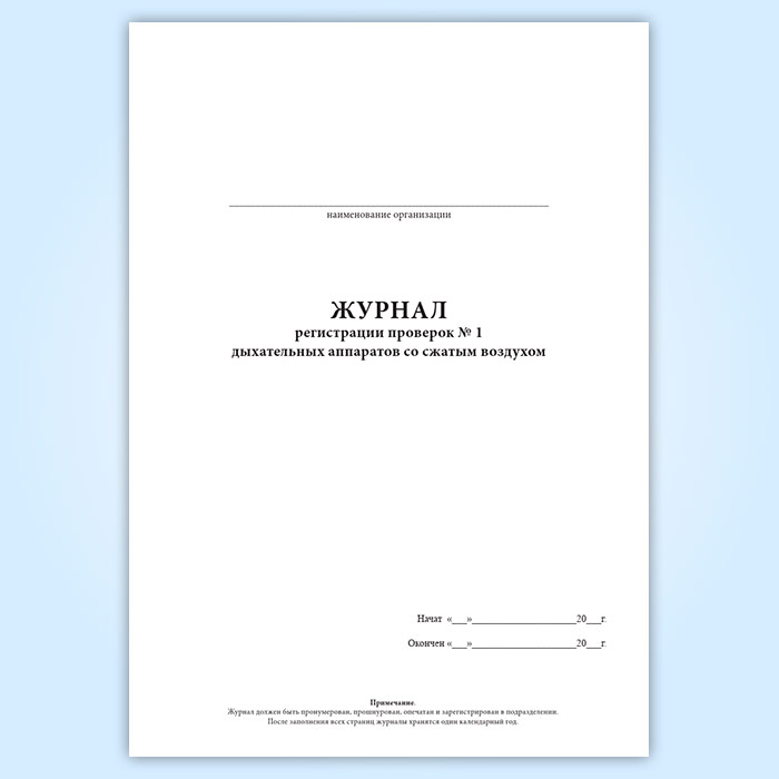 Журнал регистрации проверок N 1 дыхательных аппаратов со сжатым воздухом в Омске купить