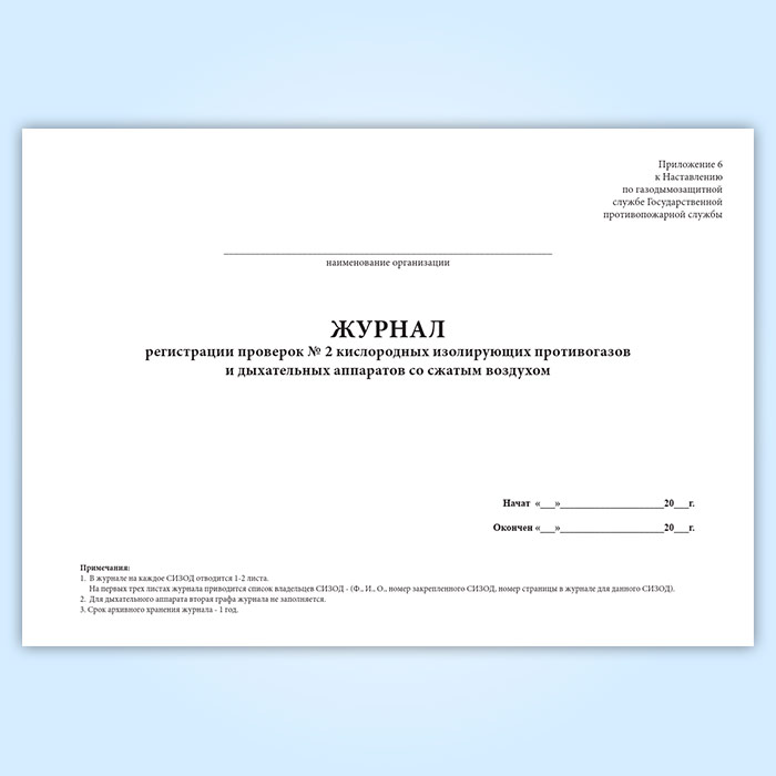 Журнал регистрации проверок № 2 кислородных изолирующих противогазов и дыхательных аппаратов на сжатом воздухе в Омске купить