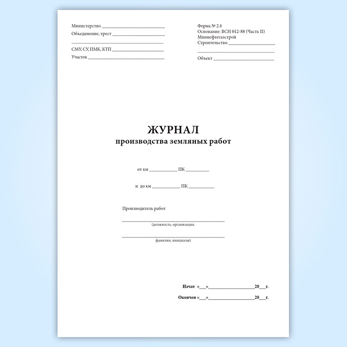 Журнал производства земляных работ (форма 2.4) (трубопроводы) в Омске купить