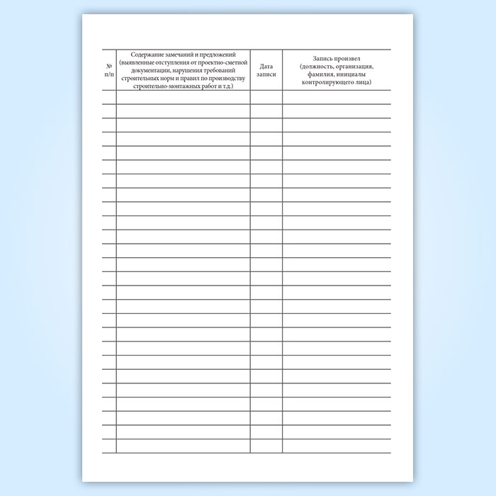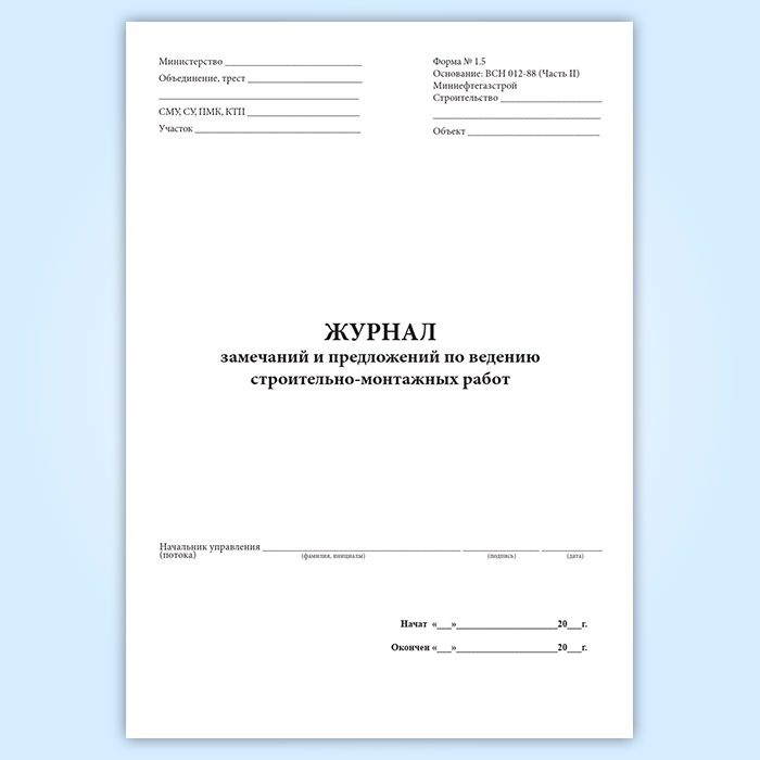 Журнал замечаний и предложений по ведению строительно-монтажных работ в Омске купить