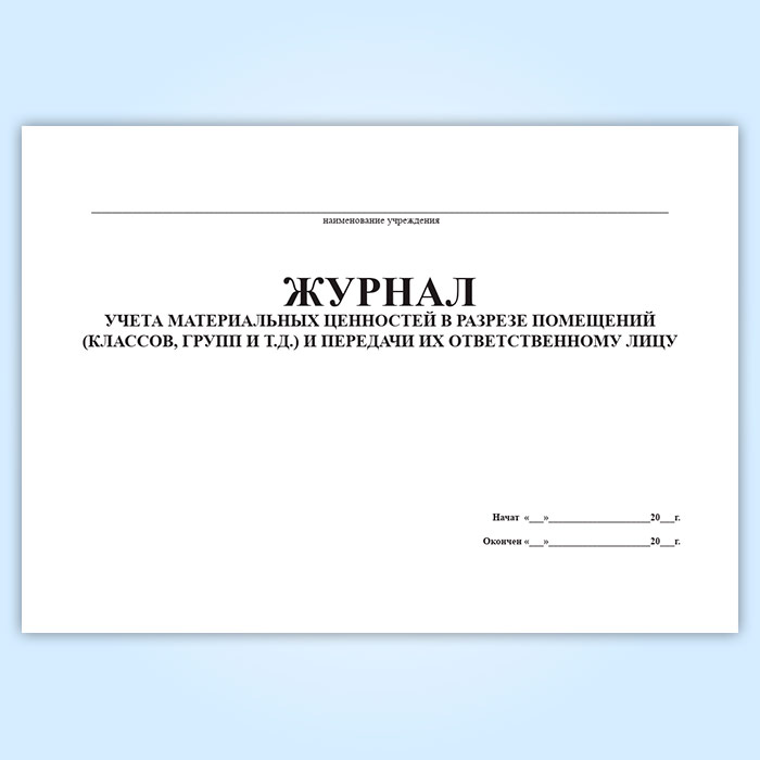 Журнал учета материальных ценностей в разрезе помещений (классов, групп и т.д.) и передачи их ответственному лицу в Омске купить