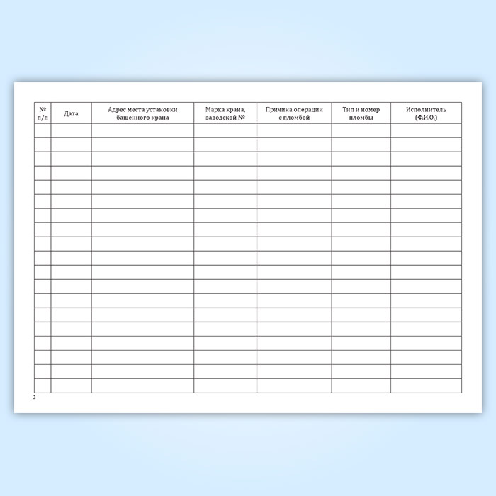 Журнал запирания и опломбирования защитных панелей башенных кранов в Омске купить