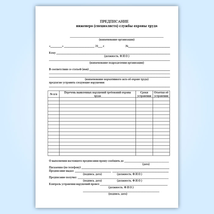 Журнал учета выдачи предписаний инженера (специалиста) службы охраны труда в Омске купить