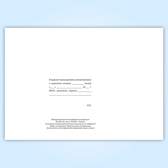 Вы получаете печатную продукцию прошнурованной и c местом для вашей печати в соответствии с действующими нормативными документами: