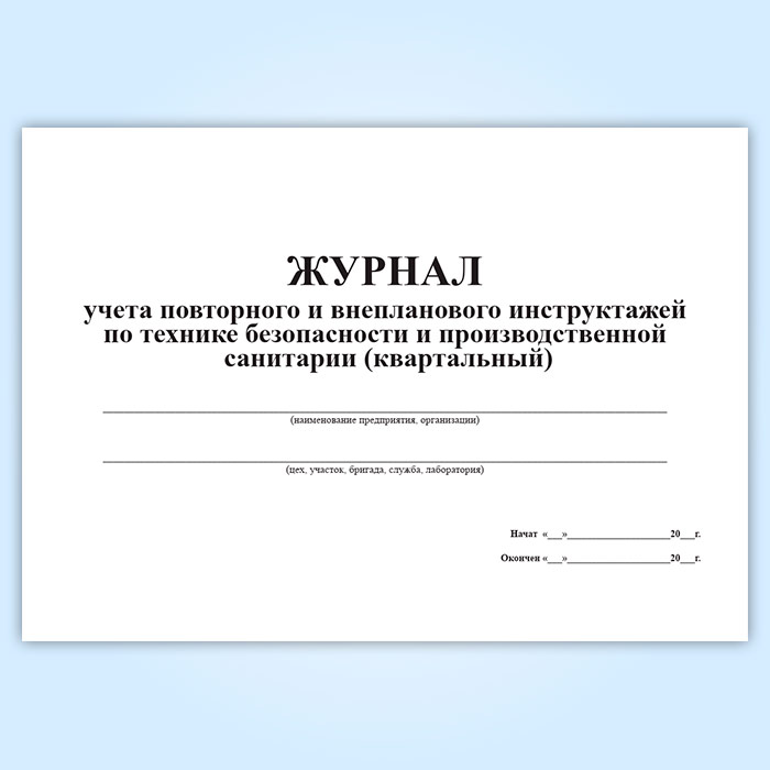 Журнал учета повторного и внепланового инструктажей по технике безопасности и производственной санитарии (квартальный) в Омске купить