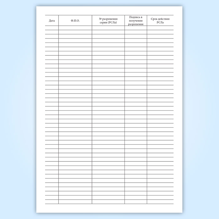 Журнал регистрации и выдачи поступающих разрешений на хранение и ношение огнестрельного оружия (РСЛа) в Омске купить