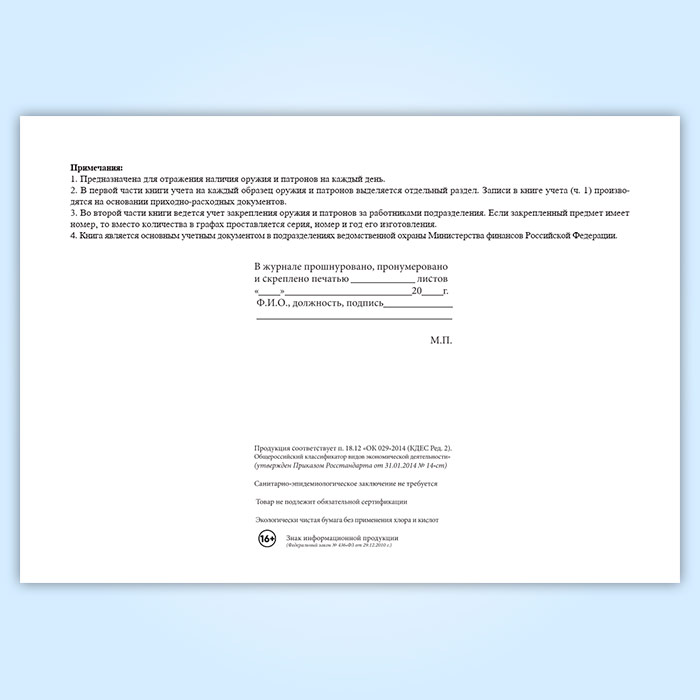 Книга учета и персонального закрепления оружия и патронов в Омске купить