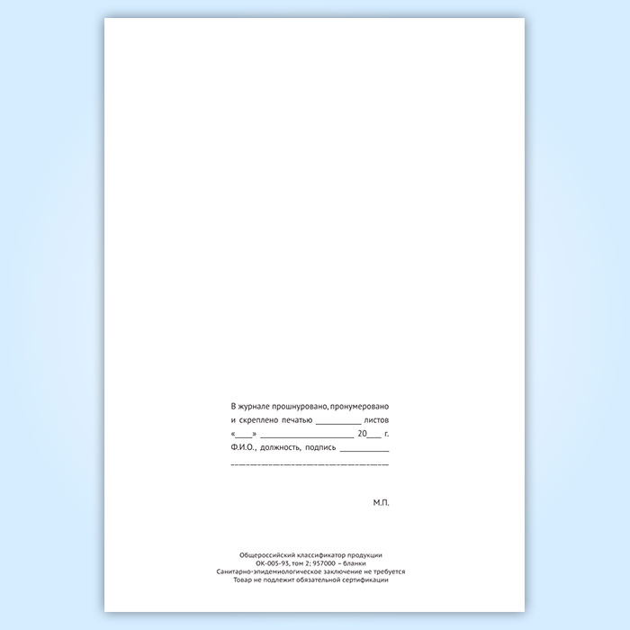 Вы получаете печатную продукцию прошнурованной и c местом для вашей печати в соответствии с действующими нормативными документами: