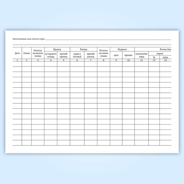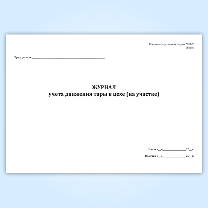 Журнал учета движения тары в цехе (форма П-7 тара) в Омске купить