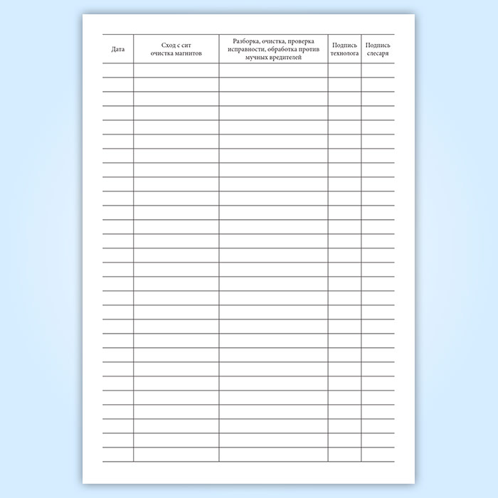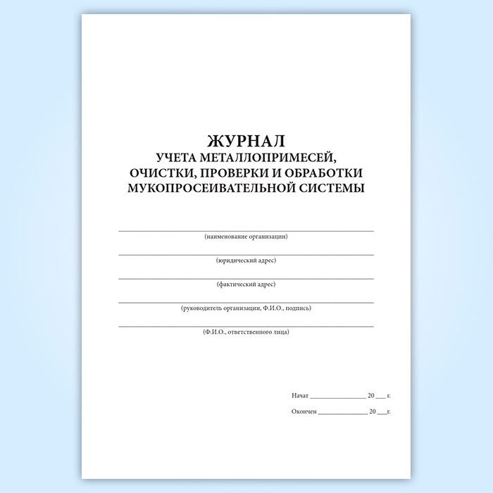 Журнал учета металлопримесей, очистки, проверки и обработки мукопросеивательной системы в Омске купить
