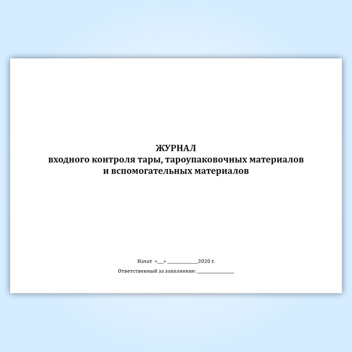 Журнал входного контроля тары, тароупаковочных материалов и вспомогательных материалов в Омске купить