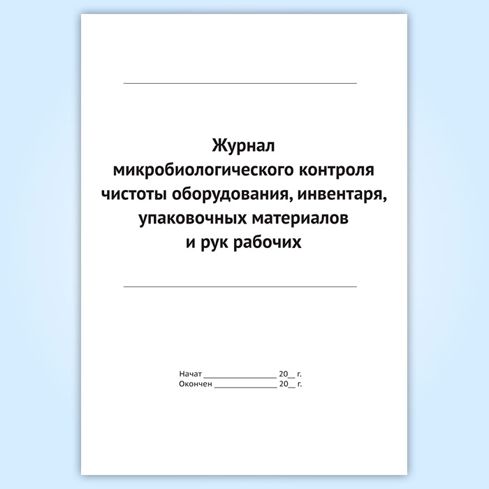 Журнал микробиологического контроля чистоты оборудования, инвентаря, упаковочных материалов и рук рабочих в Омске купить