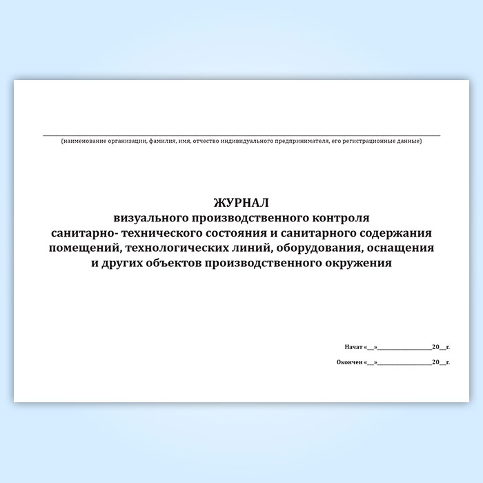 Журнал визуального производственного контроля санитарно-технического состояния и санитарного содержания помещений, технологических линий, оборудования, оснащения и других объектов производственного окружения в Омске купить