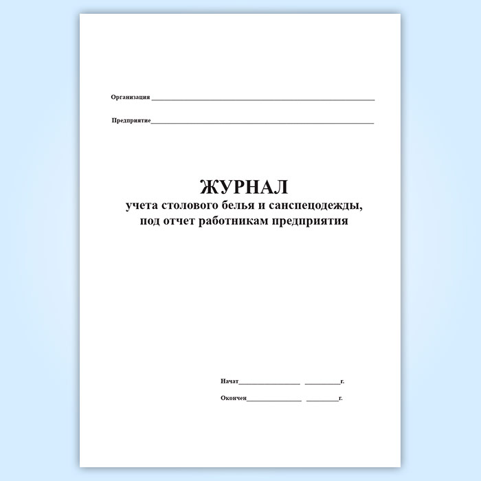 Журнал учета столового белья и санспецодежды, выдаваемой под отчет работникам предприятия в Омске купить