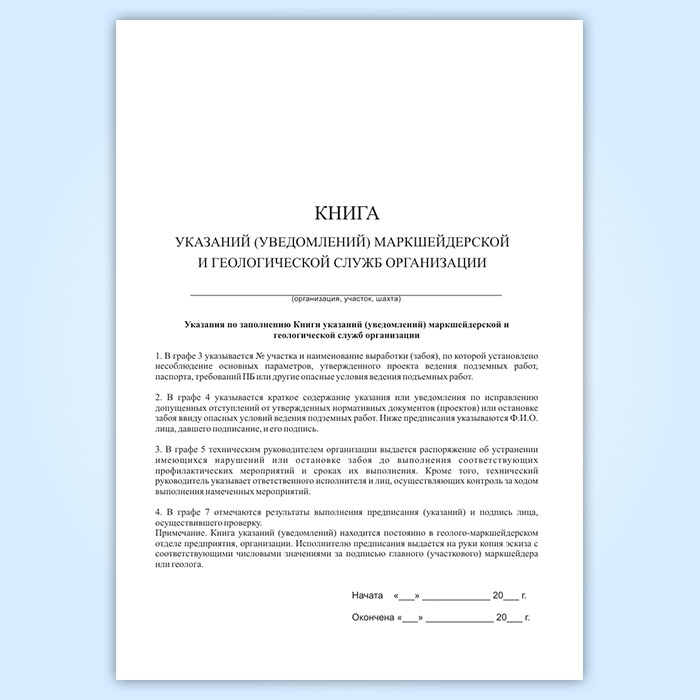 Книга указаний (уведомлений) маркшейдерской и геологической служб организации в Омске купить