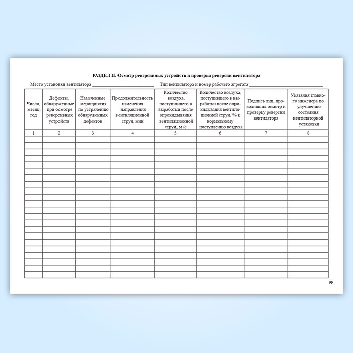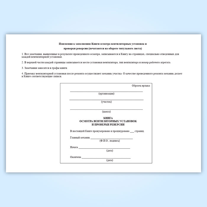 Книга осмотра вентиляторных установок и проверки реверсии в Омске купить