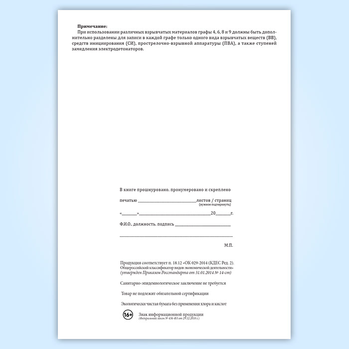 Книга учета выдачи и возврата взрывчатых материалов в Омске купить