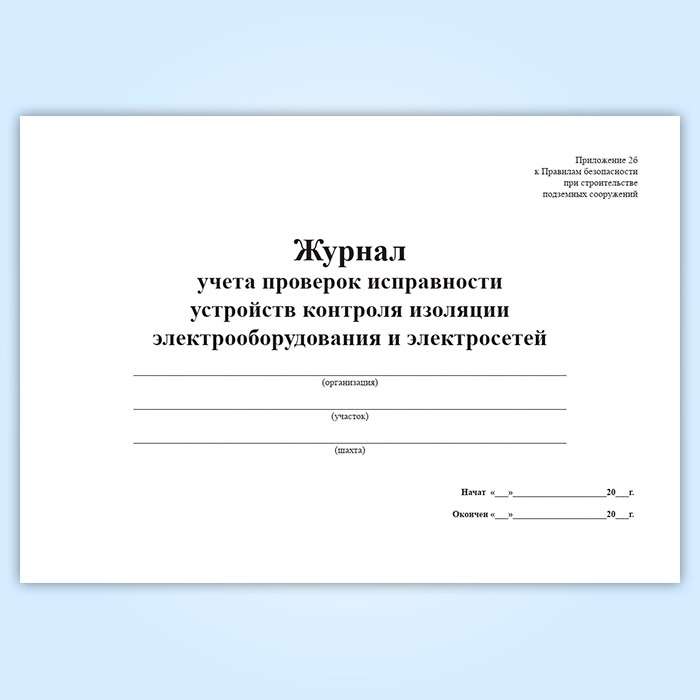 Журнал учета проверок исправности устройств контроля изоляции электрооборудования и электросетей в Омске купить