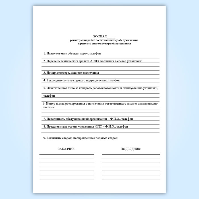 Журнал регистрации работ по техническому обслуживанию и ремонту систем пожарной автоматики в Омске купить