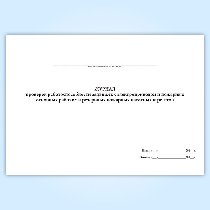 Журнал проверок работоспособности задвижек с электроприводом и пожарных основных рабочих и резервных пожарных насосных агрегатов в Омске купить
