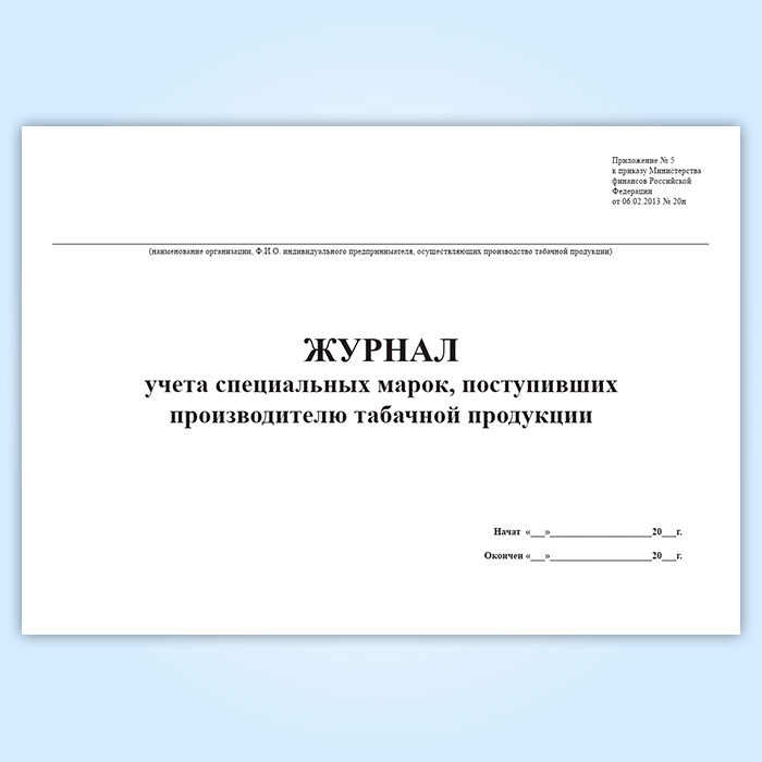 Журнал учета специальных марок, поступивших производителю табачной продукции в Омске купить