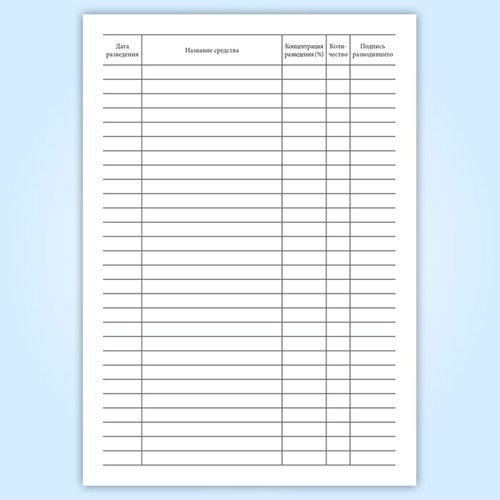 Журнал регистрации разведения моющих и дезинфицирующих средств в Омске купить