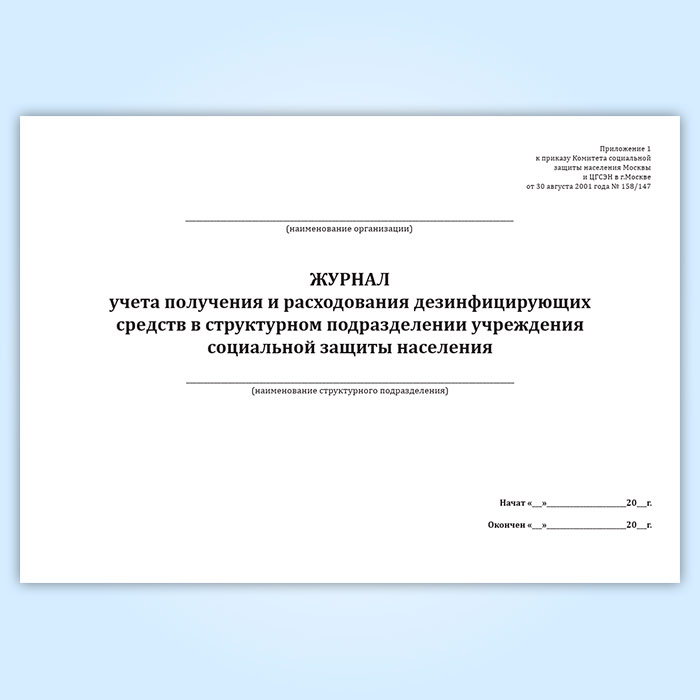Журнал учета получения и расходования дезинфицирующих средств в структурном подразделении учреждения социальной защиты населения в Омске купить