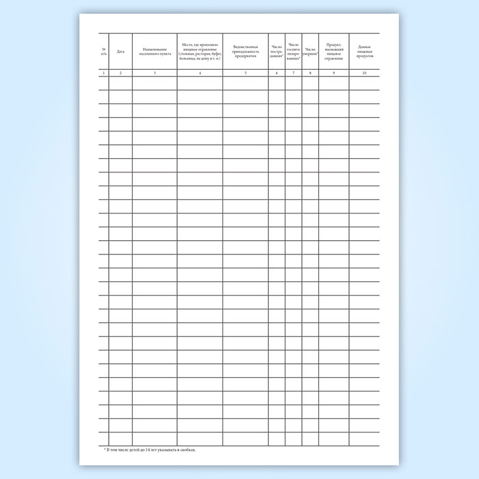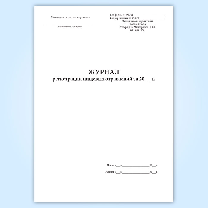 Журнал регистрации пищевых отравлений за год (форма 360/у) в Омске купить