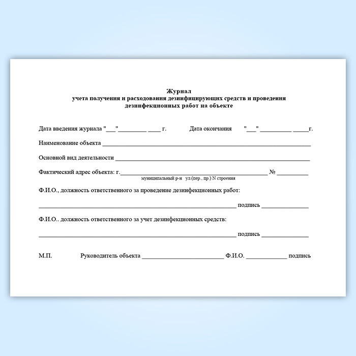 Журнал учета получения и расходования дезинфицирующих средств и проведения дезинфекционных работ на объекте в Омске купить