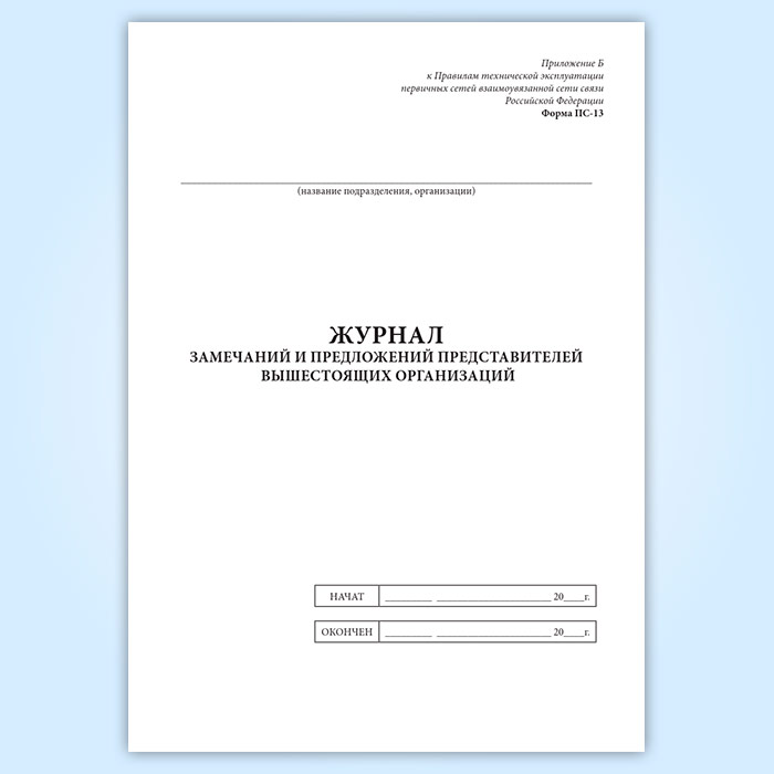 Журнал замечаний и предложений представителей вышестоящих организаций (форма ПС-13) в Омске купить