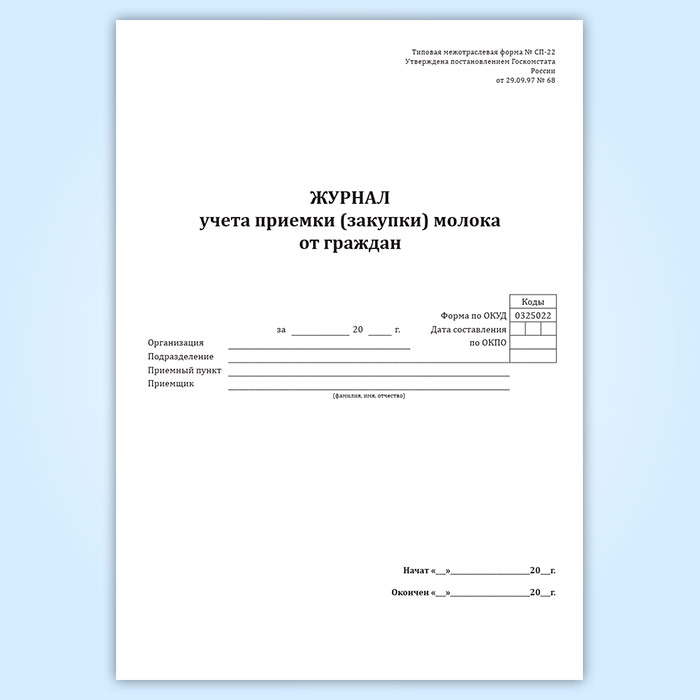 Журнал учета приемки (закупки) молока от граждан (форма СП-22) в Омске купить