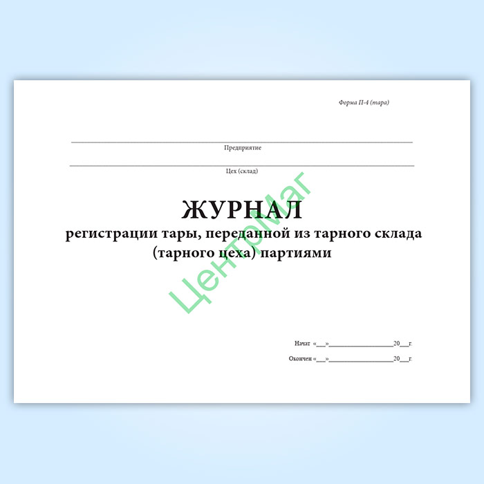 Журнал регистрации тары, переданной из тарного склада (тарного цеха) партиями (форма № П-4 тара) в Омске купить