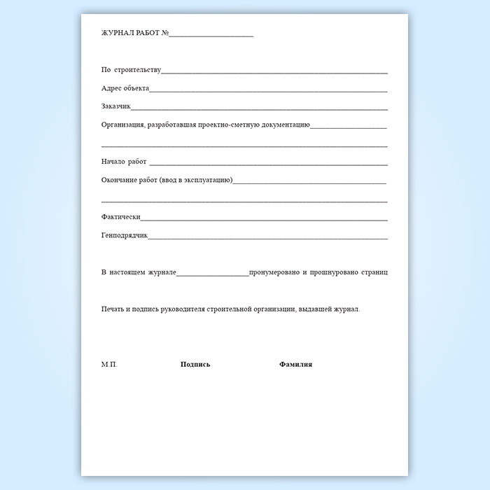 Журнал производства работ по строительству инженерных сооружений в Омске купить