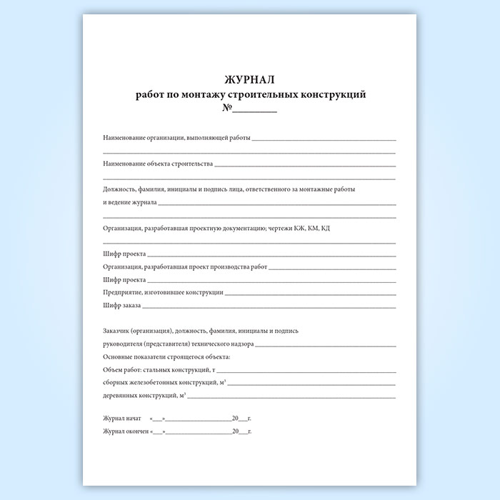 Журнал работ по монтажу строительных конструкций в Омске купить